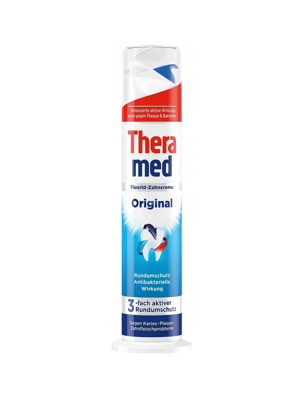 خمیر دندان ترامد پمپی مدل Original حاوی فلوراید آلمانی اصل حجم 100 میل Theramed
