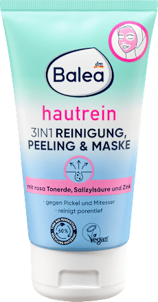 پاکسازی صورت Balea hautrein 3in1 ترکیبی از پاکسازی سریع، لایه برداری و ماسک در یک محصول است. فرمول غنی شده با خاک رس صورتی، اسید سالیسیلیک و روی باعث پاکسازی عمیق منافذ می شود. برای پاکسازی شدید و دلپذیر - روز به روز. فرمولاسیون بدون میکروپلاستیک و پلیمرهای کاملا مصنوعی محلول در آب