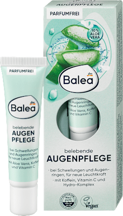 مراقبت از چشم نیروبخش Balea تضمین می کند که ناحیه چشم در صورت استفاده منظم، درخشان می شود. مجموعه ای از کافئین و ویتامین C می تواند با تورم و سیاهی زیر چشم مقابله کند. ویتامین E به عنوان یک پاک کننده رادیکال عمل می کند. برای ناحیه چشمی که تازه از آن مراقبت شده است