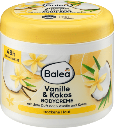 کرم بدن Balea وانیلی و نارگیل برای پوست های خشک ایده آل است و آن را به طور قابل توجهی انعطاف پذیر می کند. مجموعه مراقبتی با روغن نارگیل و عصاره نارگیل می تواند خاصیت ارتجاعی پوست را بهبود بخشد و تا 48 ساعت رطوبت مفیدی برای آن فراهم کند. فرمولاسیون بدون میکروپلاستیک و پلیمرهای کاملا مصنوعی محلول در آب.
