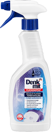 اسپری لکه دار Denkmit برای پیش درمان هدفمند منسوجات سفید و رنگی شما مناسب است. لکه های چربی مانند روغن، کرم ضد آفتاب، آرایش، رژ لب یا سس را از بین می برد. حتی لکه ها و کثیفی های خشک شده روی یقه و سرآستین را از بین می برد. بدون سفید کننده و در نتیجه حتی روی پارچه های حساس بسیار ملایم است." *بسته بندی حاوی حداقل 70 درصد محتوای بازیافتی