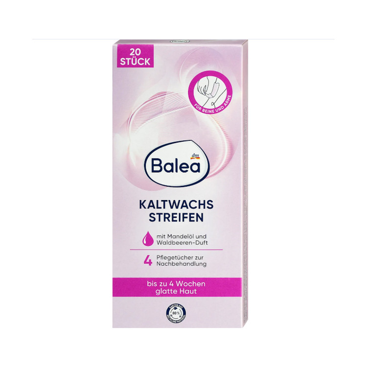 نوارهای موم سرد Balea موهای بدن را به طور موثر و آسان با نتایج طولانی مدت از بین میبرند. این نوارها همچنین عطری از توتهای وحشی بر روی بدن به جا میگذارند. این بسته شامل دستمال مرطوب برای مراقبتهای پس از اصلاح و از بین بردن باقیمانده موم است.