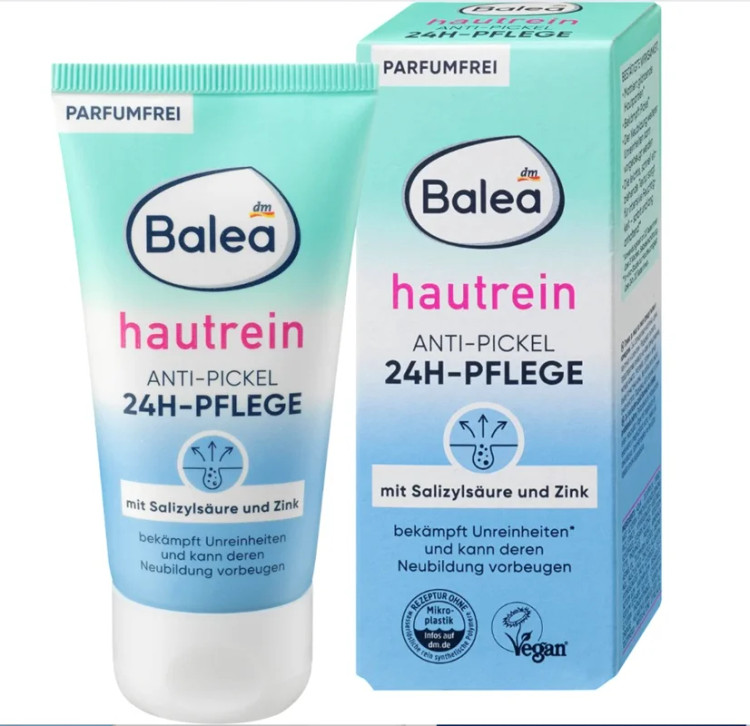 Hautrein Anti-Pimple 24h Care از Balea به عنوان مراقبت ویژه برای جوش ها و جوش های سرسیاه مناسب است. با مراقبت از صورت می تواند با جوش ها مقابله کند و از ایجاد جوش های جدید جلوگیری کند. در حالی که اسید سالیسیلیک و روی به مبارزه با باکتری های مولد جوش کمک می کنند، پانتنول و آلانتوئین دارای خواص تسکین دهنده پوست هستند. مراقبت ضد جوش همچنین می تواند نواحی براق پوست را مات کند*. بافت سبک و سریع جذب شده، رطوبت شدیدی را فراهم می کند