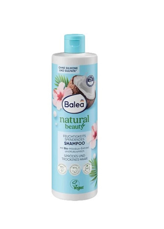 شامپو آبرسان Balea Natural Beauty با عصاره نارگیل و گل هیبیسکوس، مخصوص موهای خشک و کمآب است. این شامپو با فرمول وگان و بدون سیلیکون و سولفات، رطوبت مورد نیاز مو را تأمین کرده و از خشکی و زبری جلوگیری میکند.