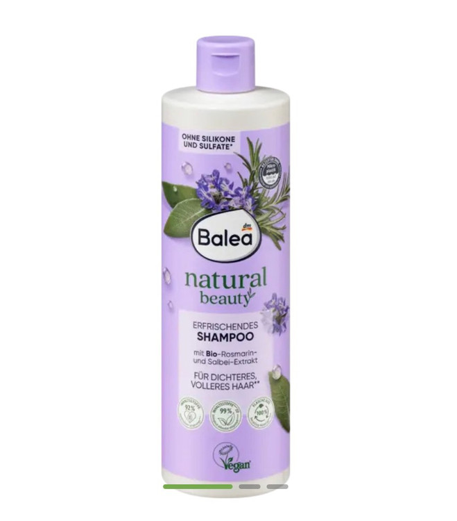 شامپو طراوتبخش Balea Natural Beauty با عصاره رزماری، مناسب موهای معمولی تا چرب است. این شامپو با خاصیت خنککنندگی ملایم، به شادابی پوست سر کمک کرده و حس سبکی و تمیزی طولانیمدت ایجاد میکند.